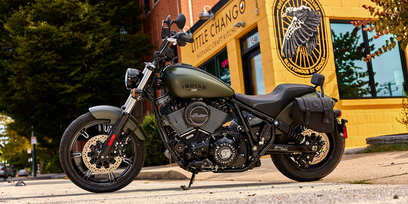 With a low seat height, a solo saddle, and mid-mount foot pegs that keep your feet underneath you, the Chief gives every rider complete control.