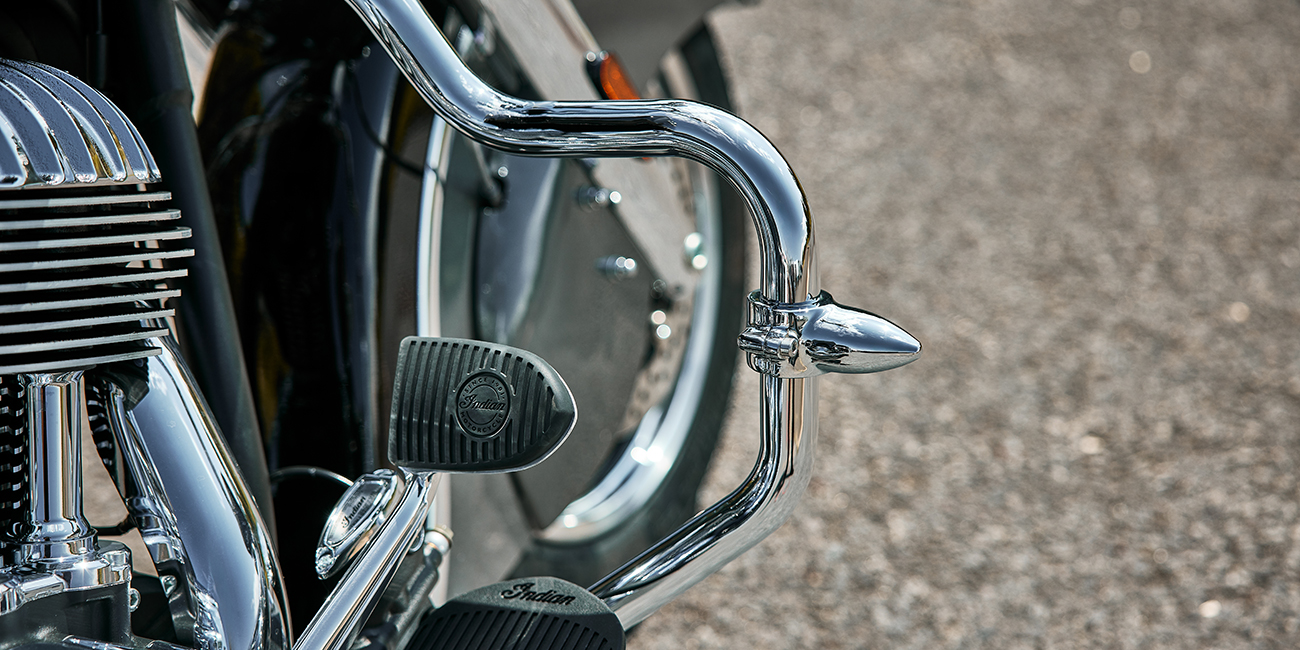Quick Release Windshield; Genuine Leather Seat; Remote-Locking Hard Saddlebags, Highway Bars; Tyre Pressure Monitoring; Light Bar; Selectable Ride Modes, ABS; Cruise Control; Keyless Ignition; Indian® Script Tank Badge; 12v Charging Port