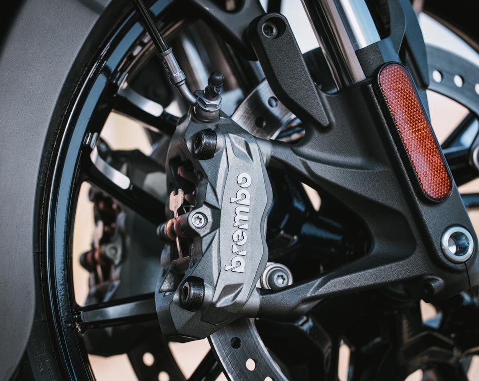 | Brakes/Front | Brembo® Callipers, Dual Semi-Floating Rotors: 320mm x 5.0mm |